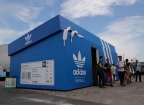 !AY NO MANCHES! La publicidad de esta tienda es de lo mas original entrar a una  caja de tenis por tus tenis wow.